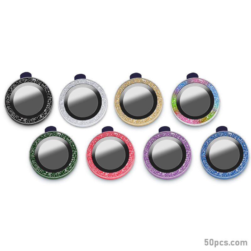 100Pcs For iPhone 11 / 11 Pro / 11 Pro Max / iPhone 12 / 12 mini / 12 Pro 3D Alloy Glitter Individual Metal Ring Cover Glass Camera Lens Protector Bling